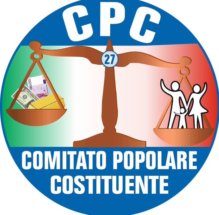 Il simbolo del Comitato, di cui si riproduce una foto qui a fianco, è costituito da un cerchio a sfondo tricolore (verde, bianco e rosso, da sinistra a destra). Nella parte superiore, su sfondo blu, compaiono in grande le lettere bianche “C P C”, disposte ad arco. Al centro campeggia una bilancia stilizzata color bronzo, con al centro il numero “27” inscritto in un piccolo cerchio blu. - Nel piatto sinistro della bilancia sono raffigurati banconote di euro e dollari, oltre che lingotti d’oro (simboli di ricchezza materiale) - Nel piatto destro sono raffigurate tre figure stilizzate bianche (due adulti e un bambino), simbolo della famiglia e dei valori sociali. Nella parte inferiore, sempre su sfondo blu, compare in caratteri maiuscoli bianchi la dicitura “COMITATO POPOLARE COSTITUENTE”. I colori predominanti del marchio sono: blu, verde, bianco, rosso, bronzo/marrone, giallo e viola. Il simbolo può essere modificato dalla Segreteria Nazionale. L’Assemblea Nazionale può apportare modifiche grafiche al simbolo che non ne alterino gli elementi essenziali, senza necessità di modifica statutaria, con la maggioranza dei due terzi dei presenti. L'uso del simbolo e del contrassegno elettorale è regolamentato dalla Segreteria Nazionale ed è riservato agli organi legittimati.